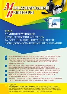 Международный вебинар Административный и родительский контроль за организацией питания детей в общеобразовательной организации