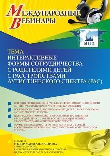 Международный вебинар Интерактивные формы сотрудничества с родителями детей с расстройствами аутистического спектра (РАС)