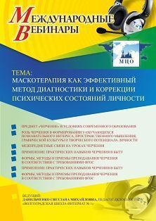 - Курс Международный вебинар "Маскотерапия как эффективный метод диагностики и коррекции психических состояний личности" | Маркетплейс онлайн образования Edwica