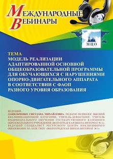 Международный вебинар Модель реализации адаптированной основной общеобразовательной программы для обучающихся с нарушениями опорно-двигательного аппарата в соответствии с ФАОП разного уровня образования
