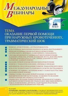 Международный вебинар Оказание первой помощи при наружных кровотечениях, травматический шок