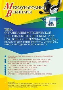 Международный вебинар Организация методической деятельности в детском саду в условиях перехода на ФОП ДО: профессиональные качества методиста, работа методического кабинета