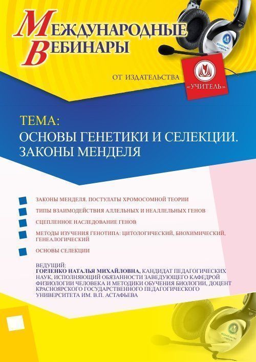 Международный вебинар "Основы генетики и селекции. Законы Менделя"