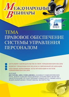 Международный вебинар Правовое обеспечение системы управления персоналом