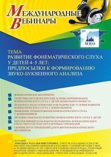 Международный вебинар Развитие фонематического слуха у детей 4-5 лет: предпосылки к формированию звуко-буквенного анализа
