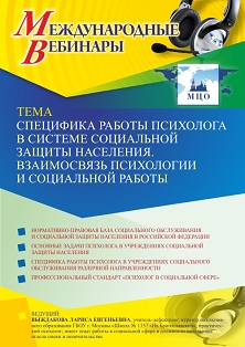 Международный вебинар Специфика работы психолога в системе социальной защиты населения. Взаимосвязь психологии и социальной работы