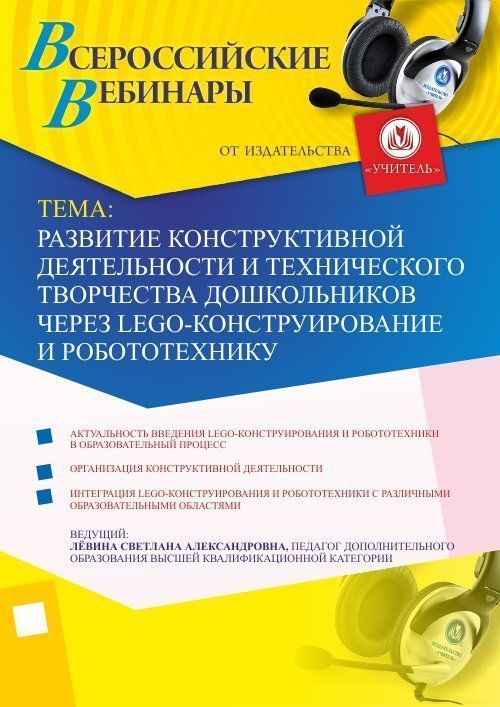 Приглашаем методистов, педагогов дополнительного образования, воспитателей принять участие в offline-вебинаре «Развитие конструктивной деятельности и технического творчества дошкольников через LEGO-конструирование и робототехнику».