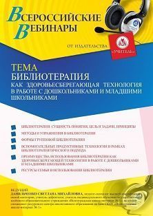 Вебинар Библиотерапия как здоровьесберегающая технология в работе с дошкольниками и младшими школьниками
