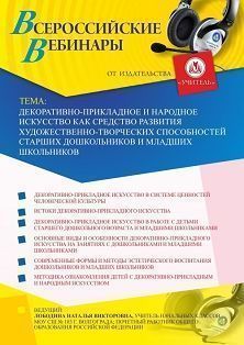 Вебинар Декоративно-прикладное и народное искусство как средство развития художественно-творческих способностей старших дошкольников и младших школьников