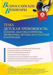 Вебинар Детская тревожность: понятие, факторы и причины, проявления, методы диагностики и коррекции