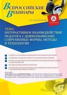 Вебинар Интерактивное взаимодействие педагога с дошкольниками: современные формы, методы и технологии