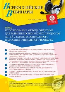 - Курс Вебинар Использование метода эйдетики для развития психических процессов детей старшего дошкольного и младшего школьного возраста | Маркетплейс онлайн образования Edwica