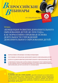 Вебинар “Концепция развития дополнительного образования детей до 2030 года” как нормативно-правовая основа деятельности учреждений дополнительного образования детей