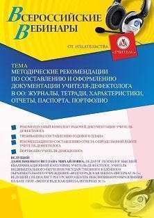 Вебинар Методические рекомендации по составлению и оформлению документации учителя-дефектолога в ОО: журналы, тетради, характеристики, отчеты, паспорта, портфолио