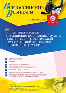 Вебинар Направления и задачи коррекционно-развивающей работы в соответствии с Федеральной образовательной программой дошкольного образования