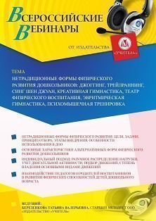 Вебинар Нетрадиционные формы физического развития дошкольников: джоггинг, трейлраннинг, синг шен джуан, креативная гимнастика, театр физического воспитания, эвритмическая гимнастика, психомышечная тренировка