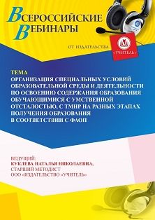 Вебинар Организация специальных условий образовательной среды и деятельности по освоению содержания образования обучающимися с умственной отсталостью, с ТМНР на разных этапах получения образования в соответствии с ФАОП