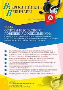 Вебинар Основы безопасного поведения дошкольников: ситуационно-имитационное моделирование, игры и упражнения для эффективной социализации и формирования общественного опыта