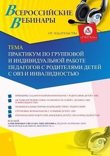 Вебинар Практикум по групповой и индивидуальной работе педагогов с родителями детей с ОВЗ и инвалидностью
