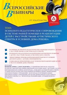 Вебинар Психолого-педагогическое сопровождение в системе ранней помощи и реабилитации детей с расстройствами аутистического спектра в условиях дома ребенка