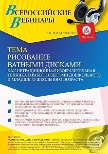 Вебинар Рисование ватными дисками как нетрадиционная изобразительная техника в работе с детьми дошкольного и младшего школьного возраста