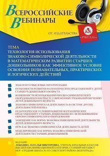 Вебинар Технология использования знаково-символической деятельности в математическом развитии старших дошкольников как эффективное условие освоения познавательных, практических и логических действий