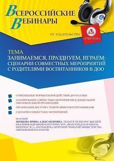 Вебинар Занимаемся, празднуем, играем: сценарии совместных мероприятий с родителями воспитанников в ДОО